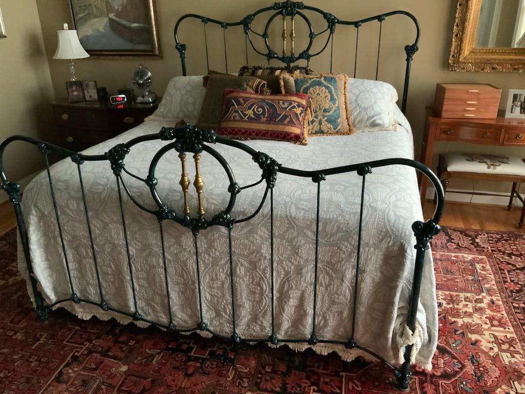 This cotton bedspread was originally introduced in the 1950s as a classic matelasse but was later transitioned into production as a flat jacquard quilt called "Brittany" in the 1970s. Flat jacquards, lacking the signature “puff” of a matelasse bedspread, did not take off in popularity and so the pattern was discontinued.