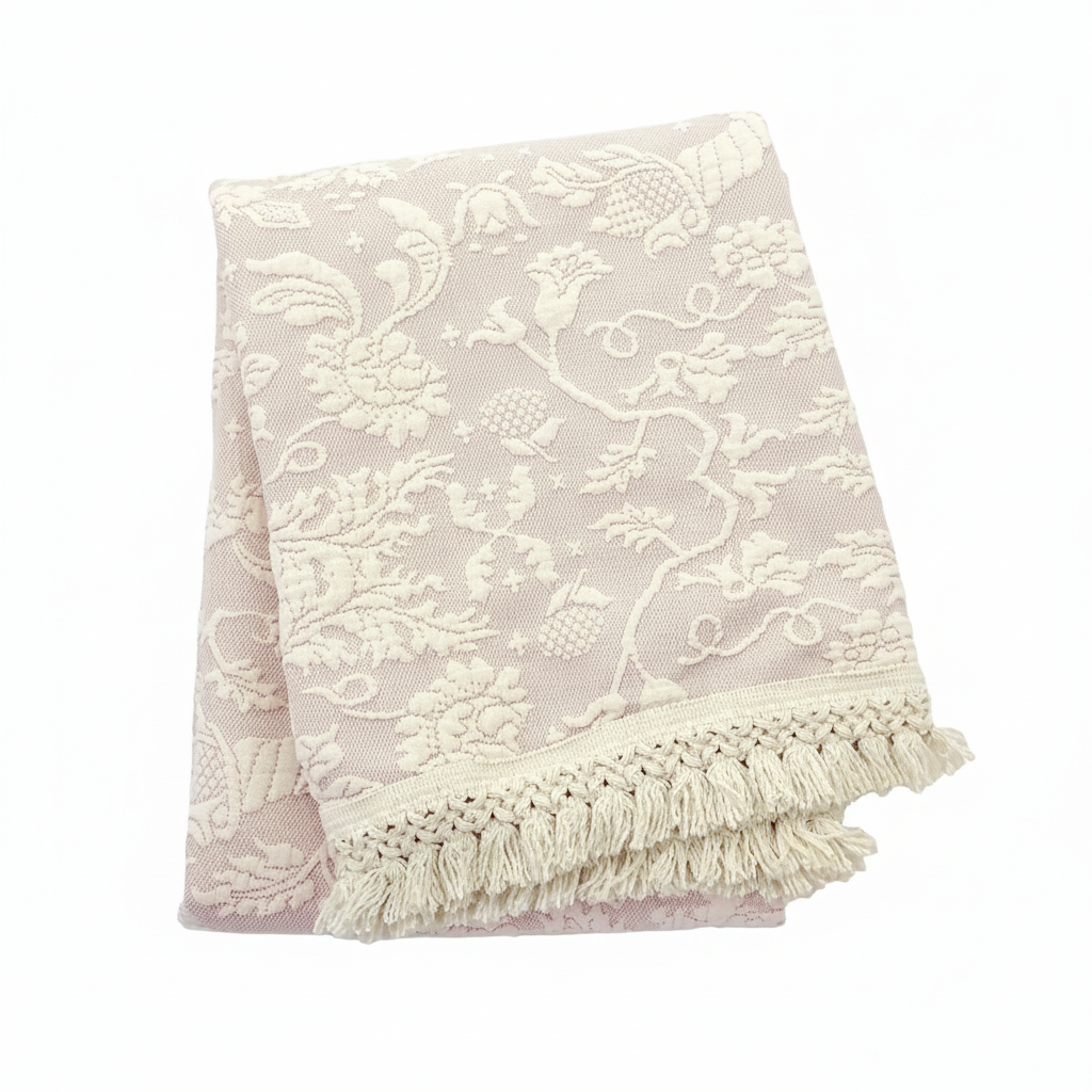 Our Limited Edition Lisa’s Choice Throw in quartz features an elegant floral pattern in a soft pink tone that is sure to please. We have re-released this item just in time for Valentine's Day!