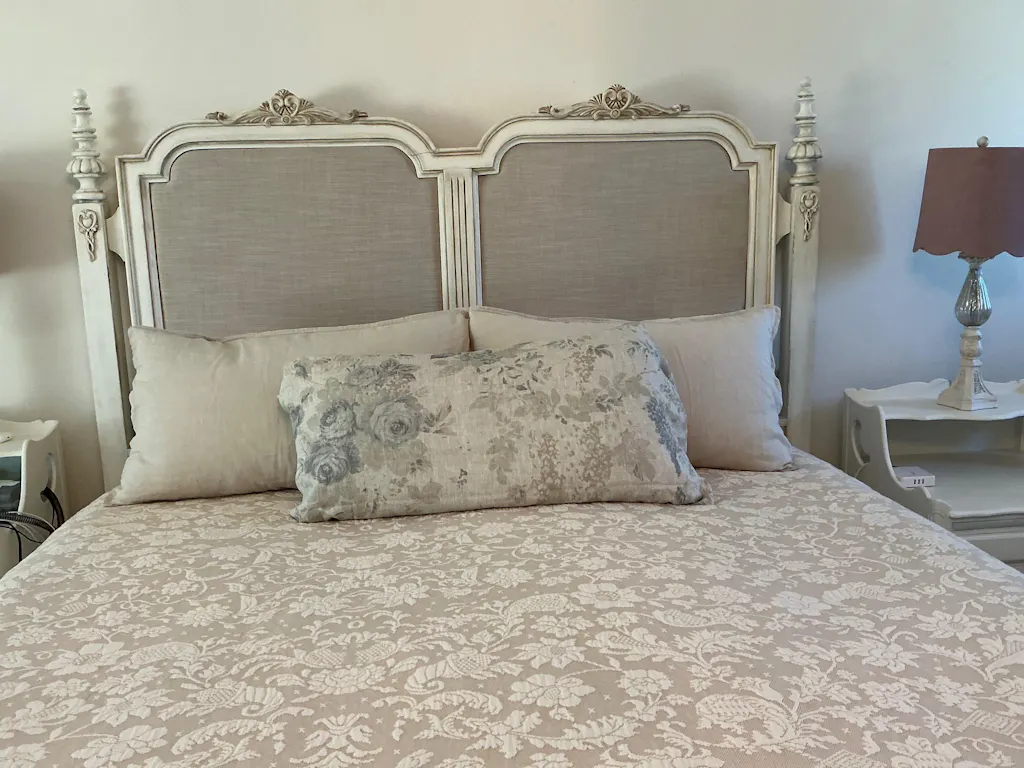 Floral elements from the sides of the Queen Elizabeth Bedspread are used here in a new way, creating a flowing, luxurious pattern that fits well in both modern and traditional style homes.