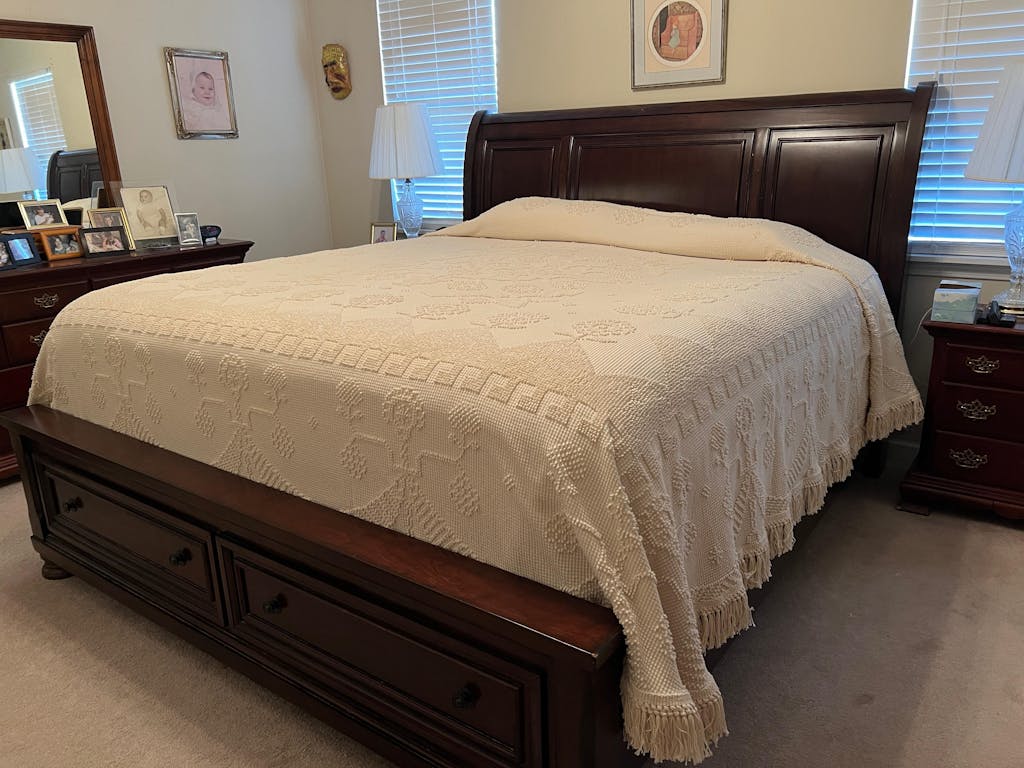 This vintage bedspread pattern is a replica of the handwoven candlewick bedspread that George Washington lovingly gave to his bride, Martha, on their wedding day. It quickly became a household favorite and continues to be our number one seller today.