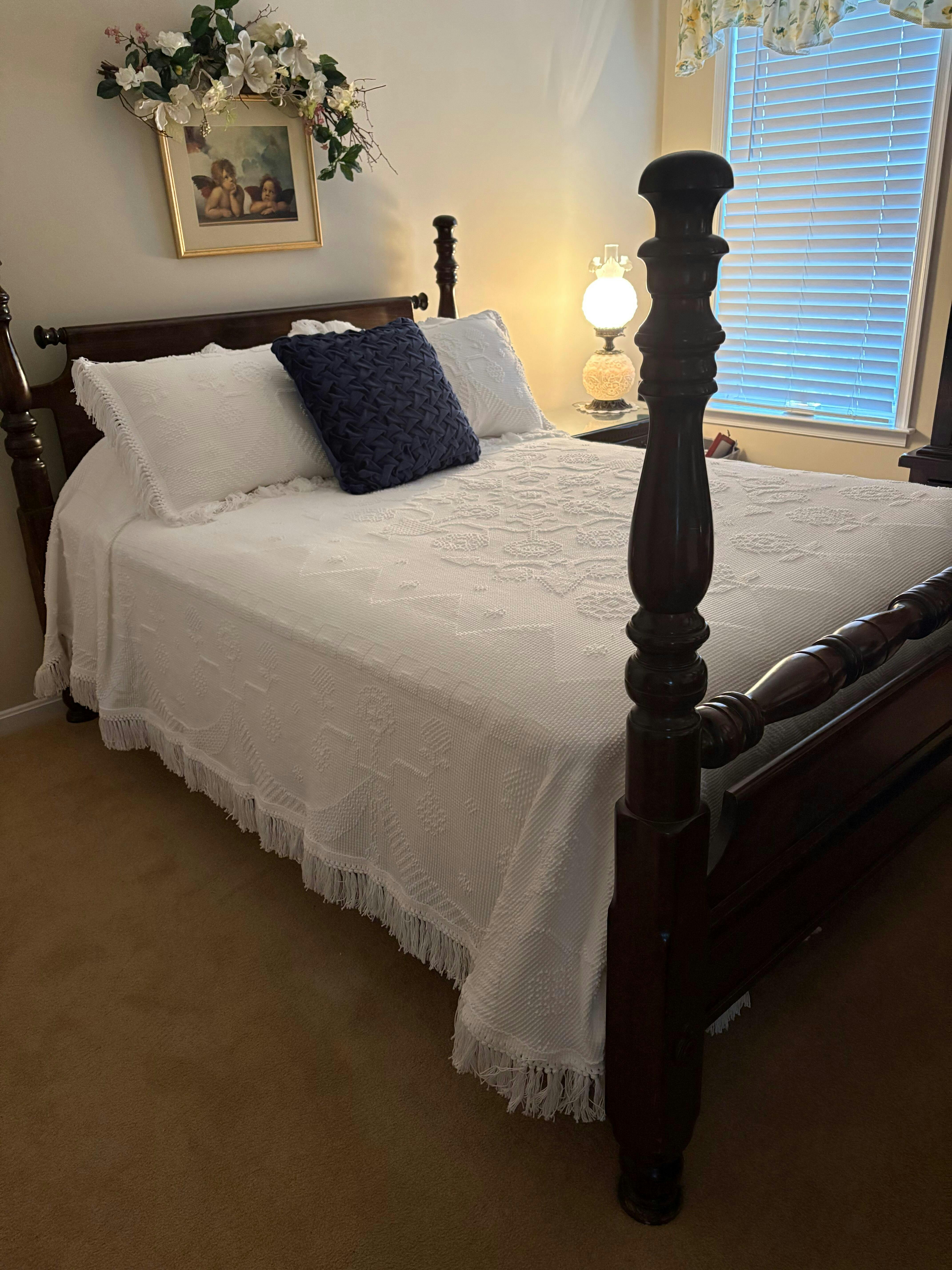 This vintage bedspread pattern is a replica of the handwoven candlewick bedspread that George Washington lovingly gave to his bride, Martha, on their wedding day. It quickly became a household favorite and continues to be our number one seller today.
